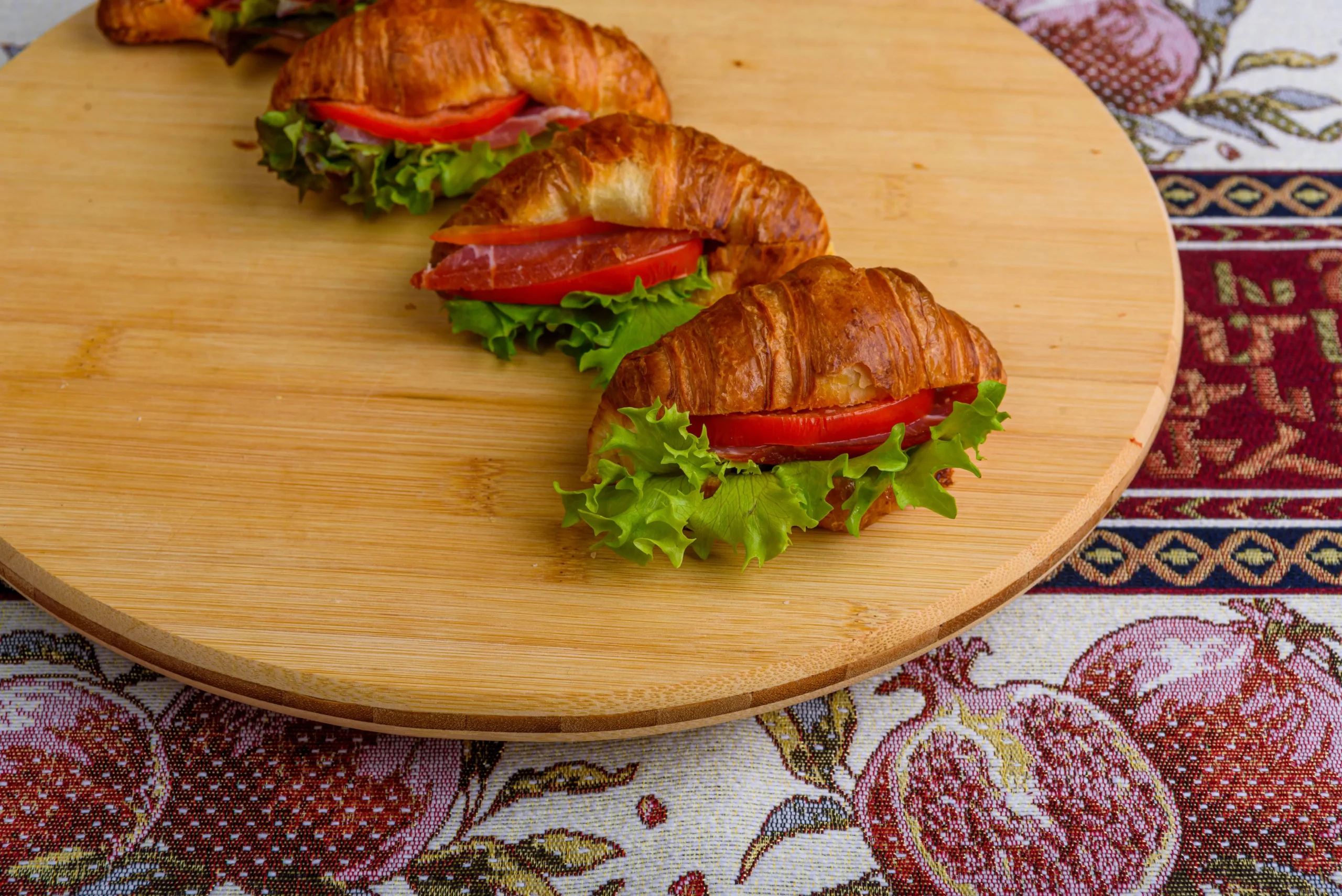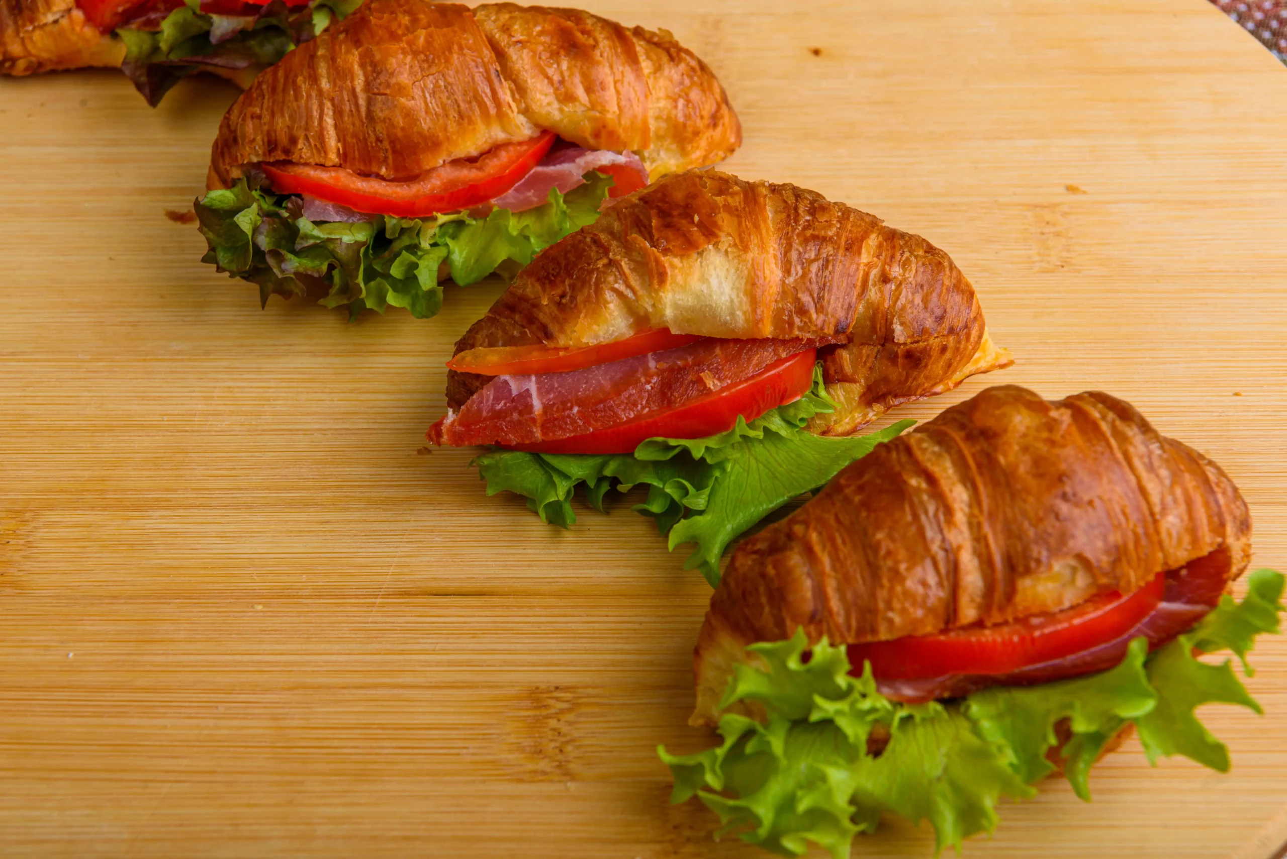 Mini Kruasanai su kumpiu ir daržovėmis – 1,5eur/vnt.
