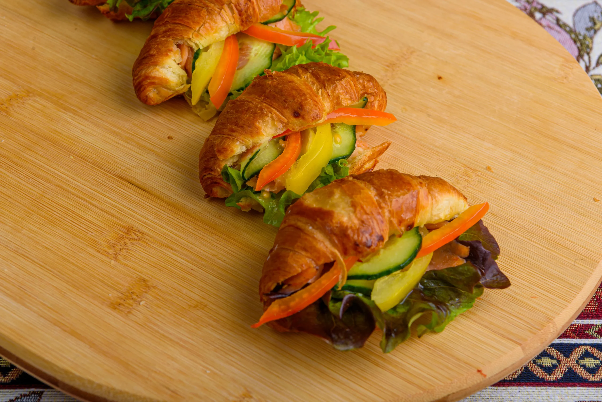 Mini Kruasanai su sūdyta lašiša ir daržovėmis – 1,5eur/vnt.