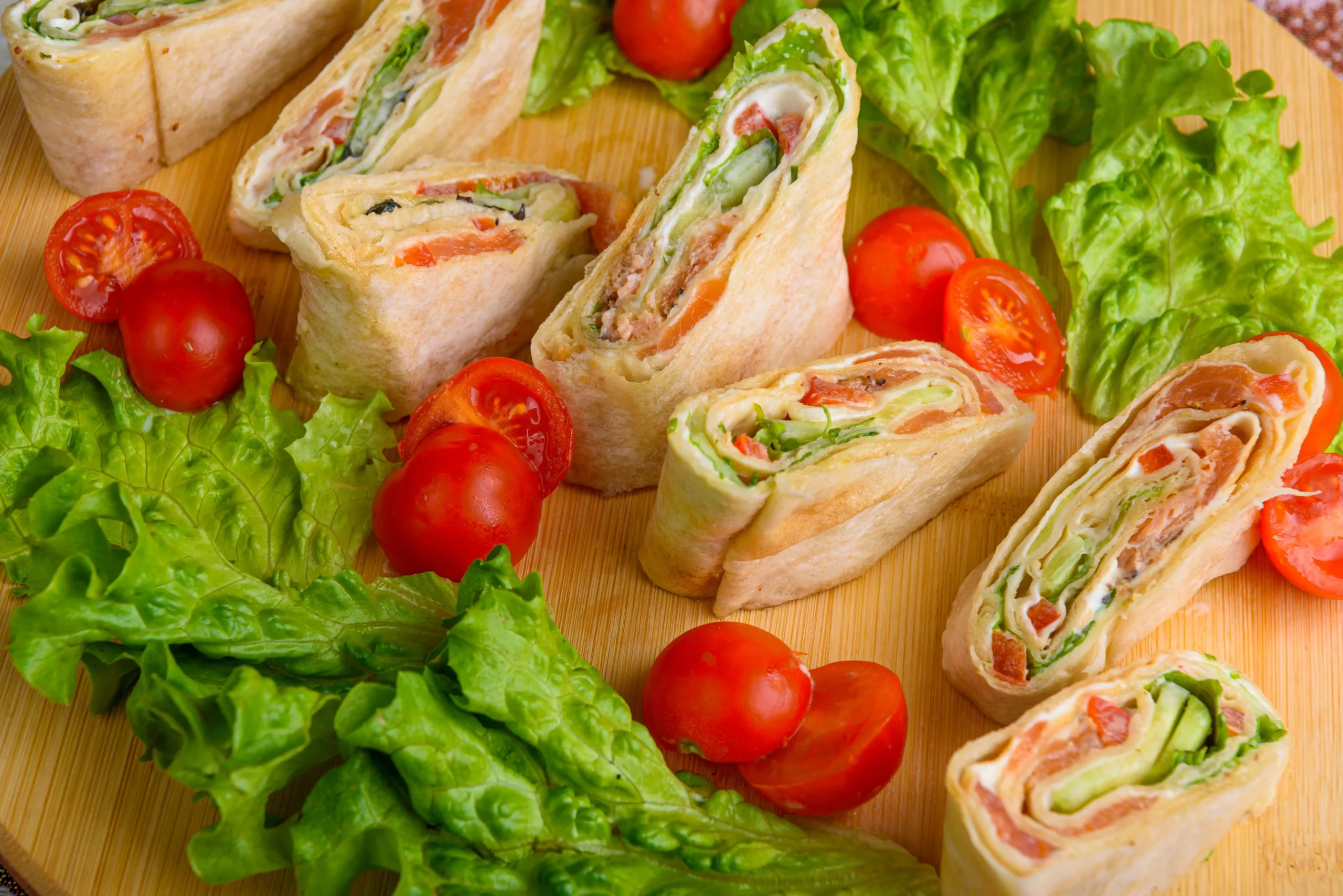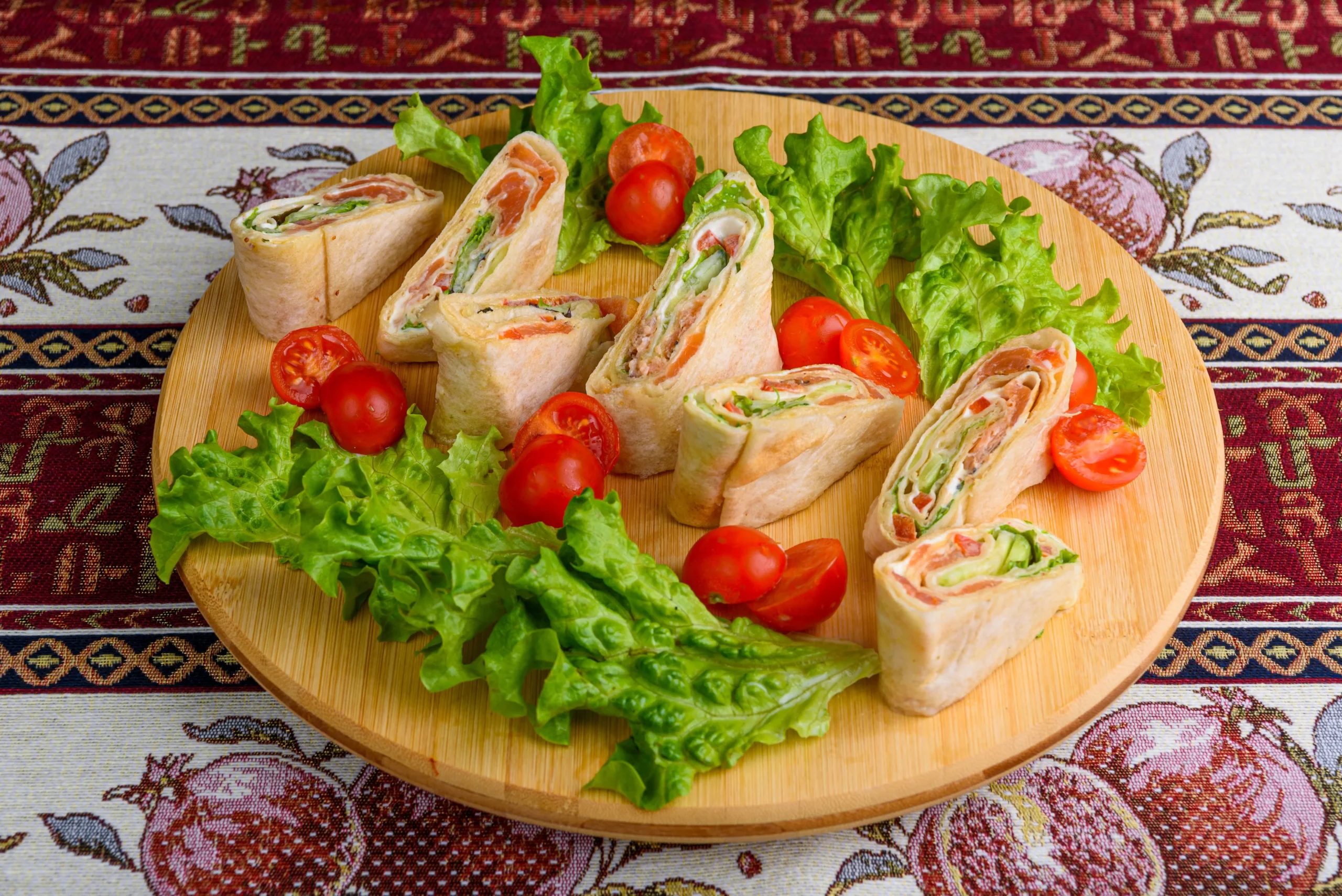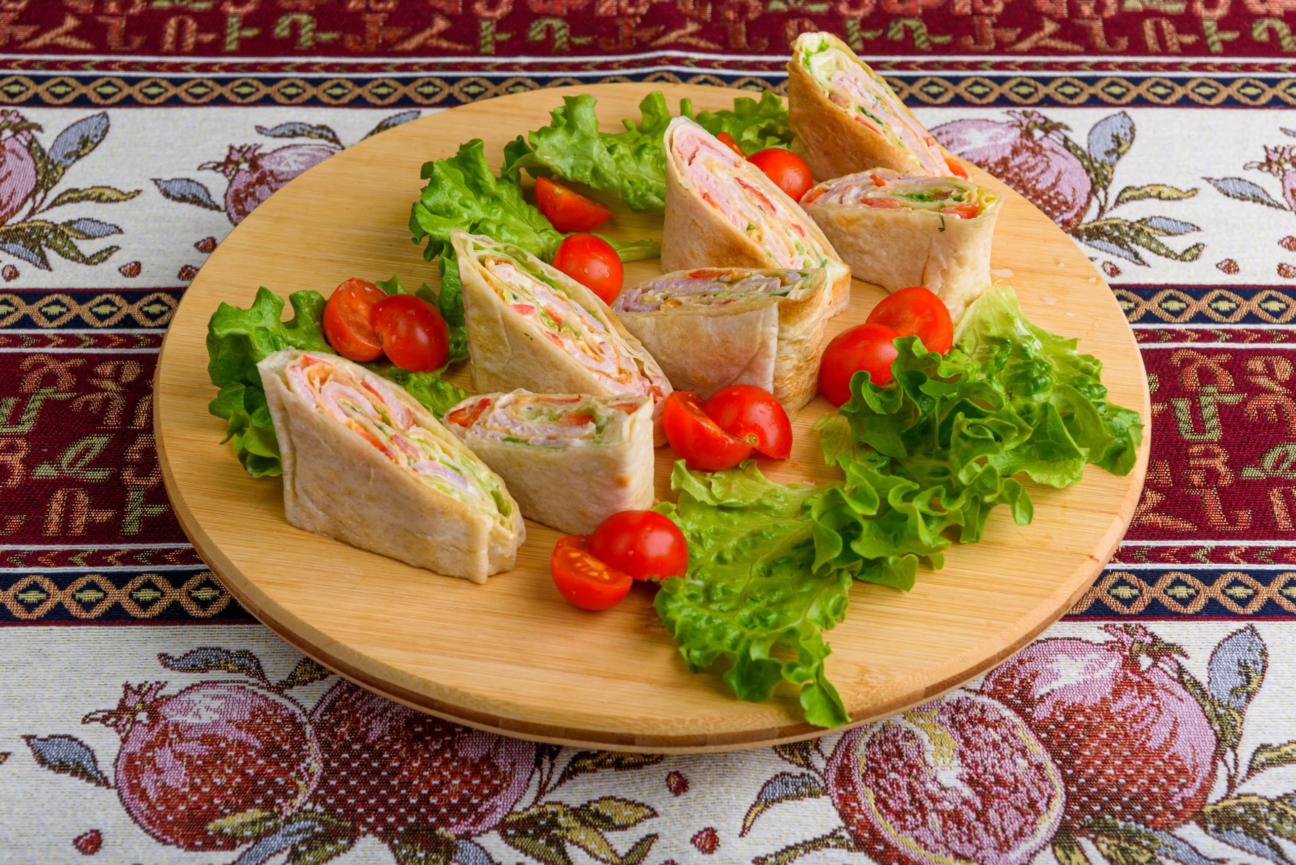 Lavašo suktinukai ( su kumpiu, su daržovėmis ir sūriu) – 1 eur/vnt.