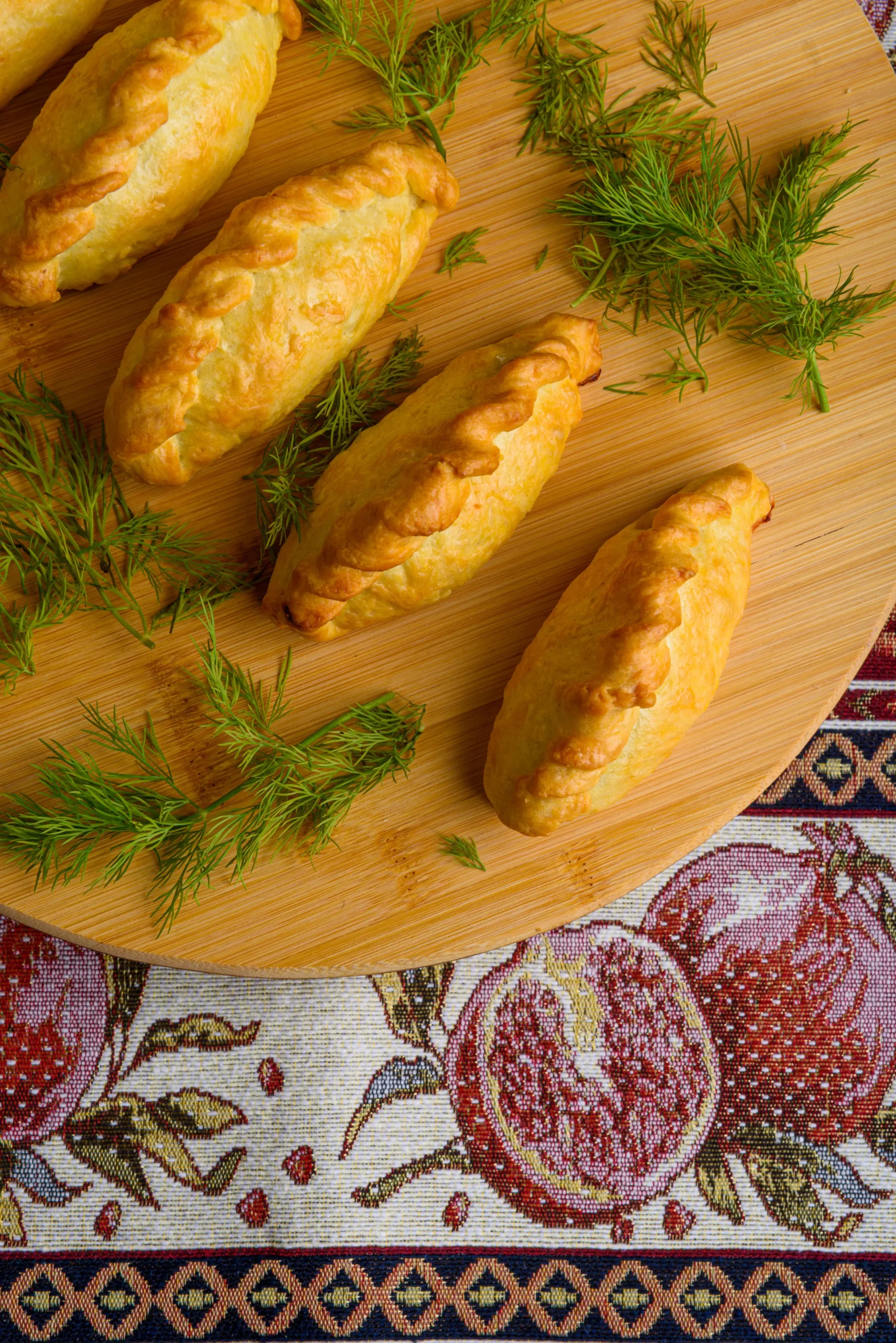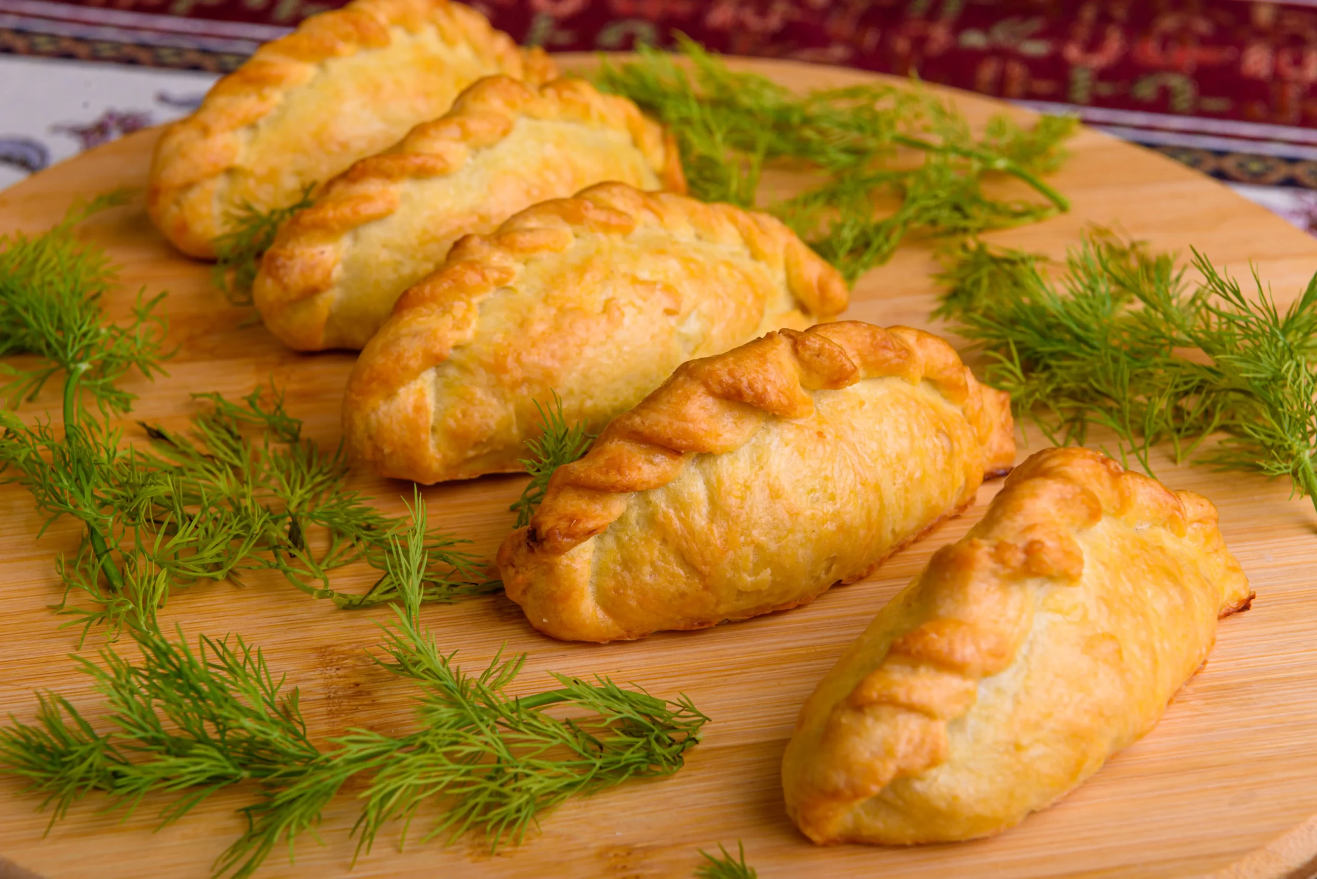 Mini kibinai su kiauliena, su vištiena arba su grybais – 1,5eur/vnt.