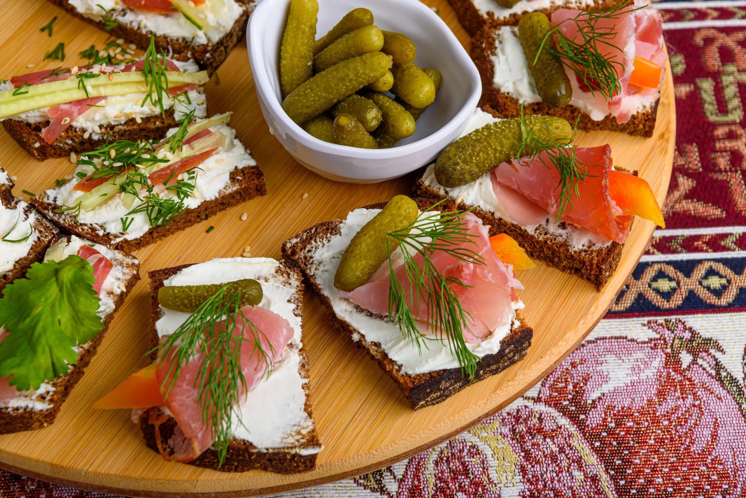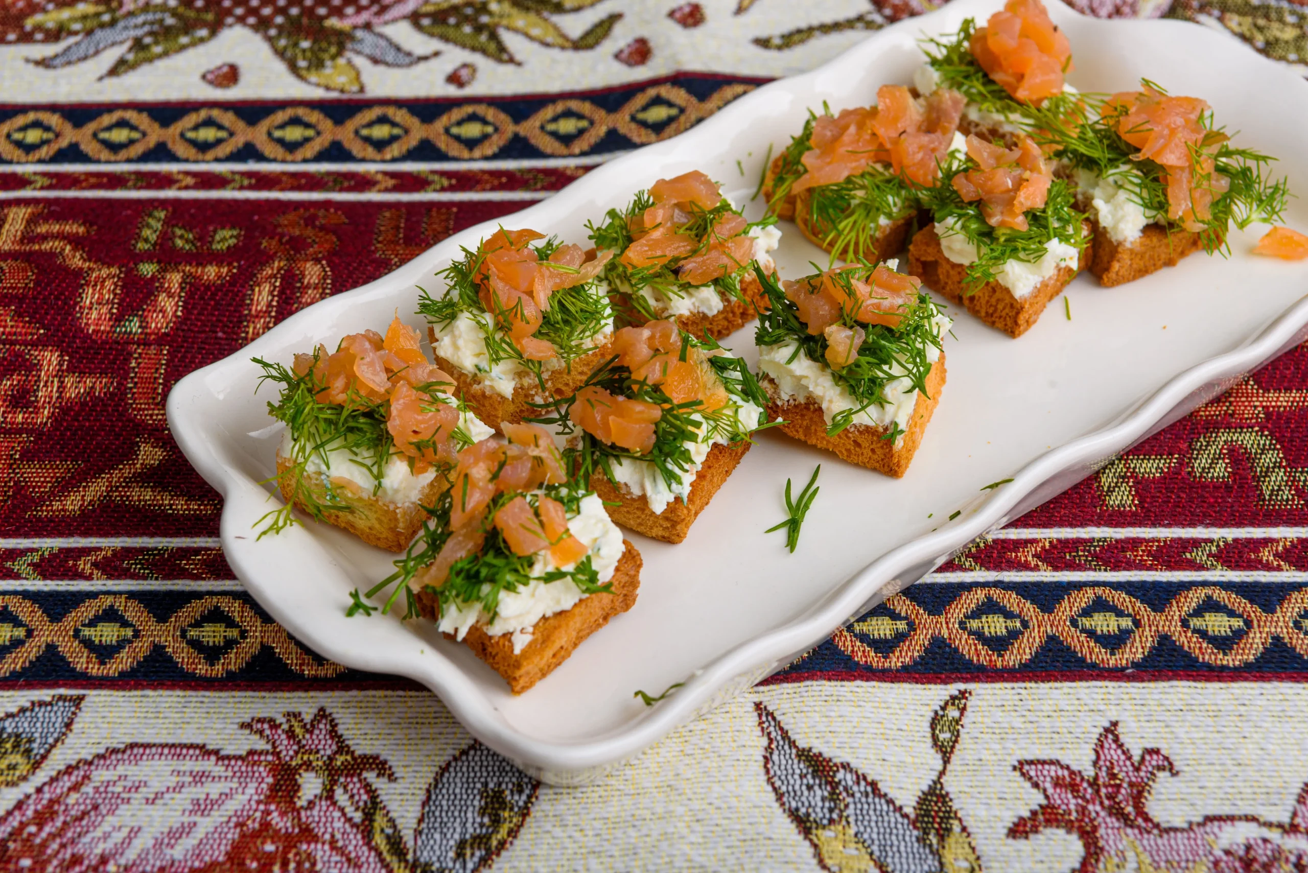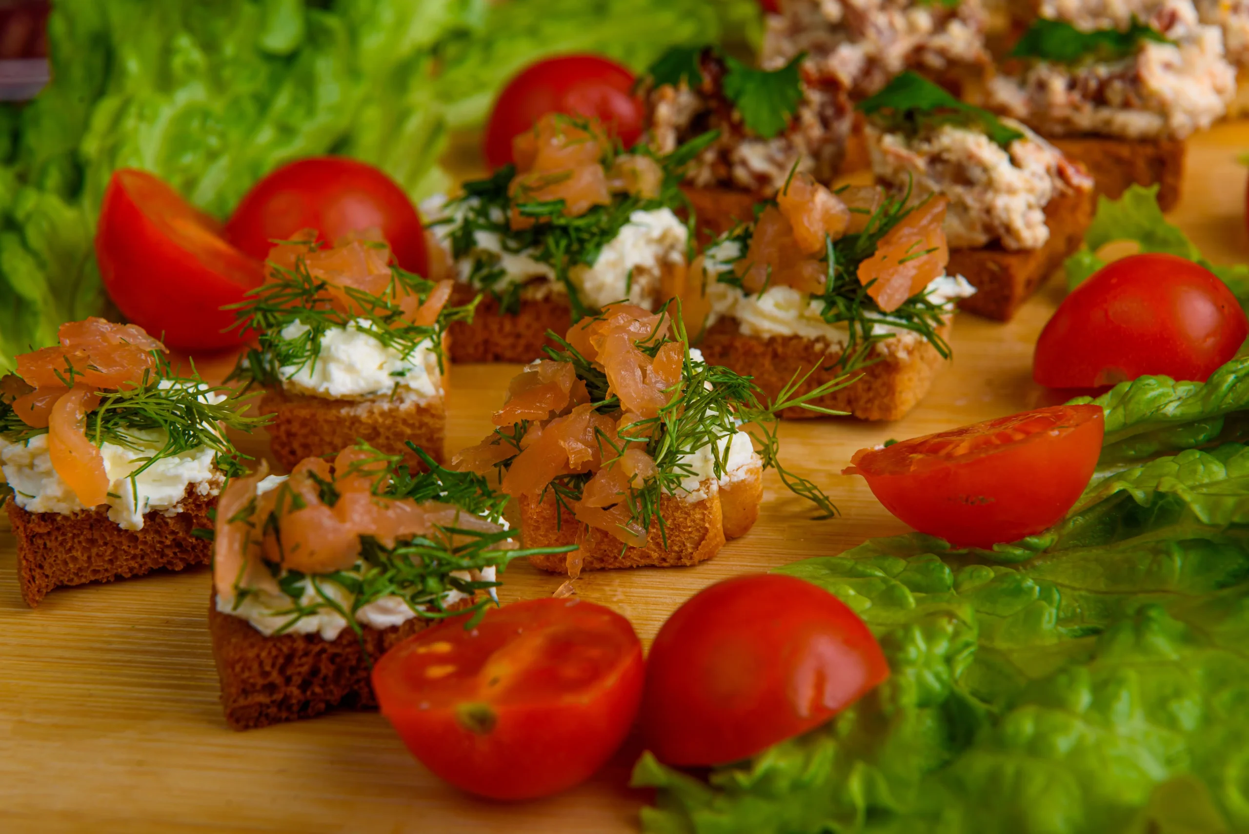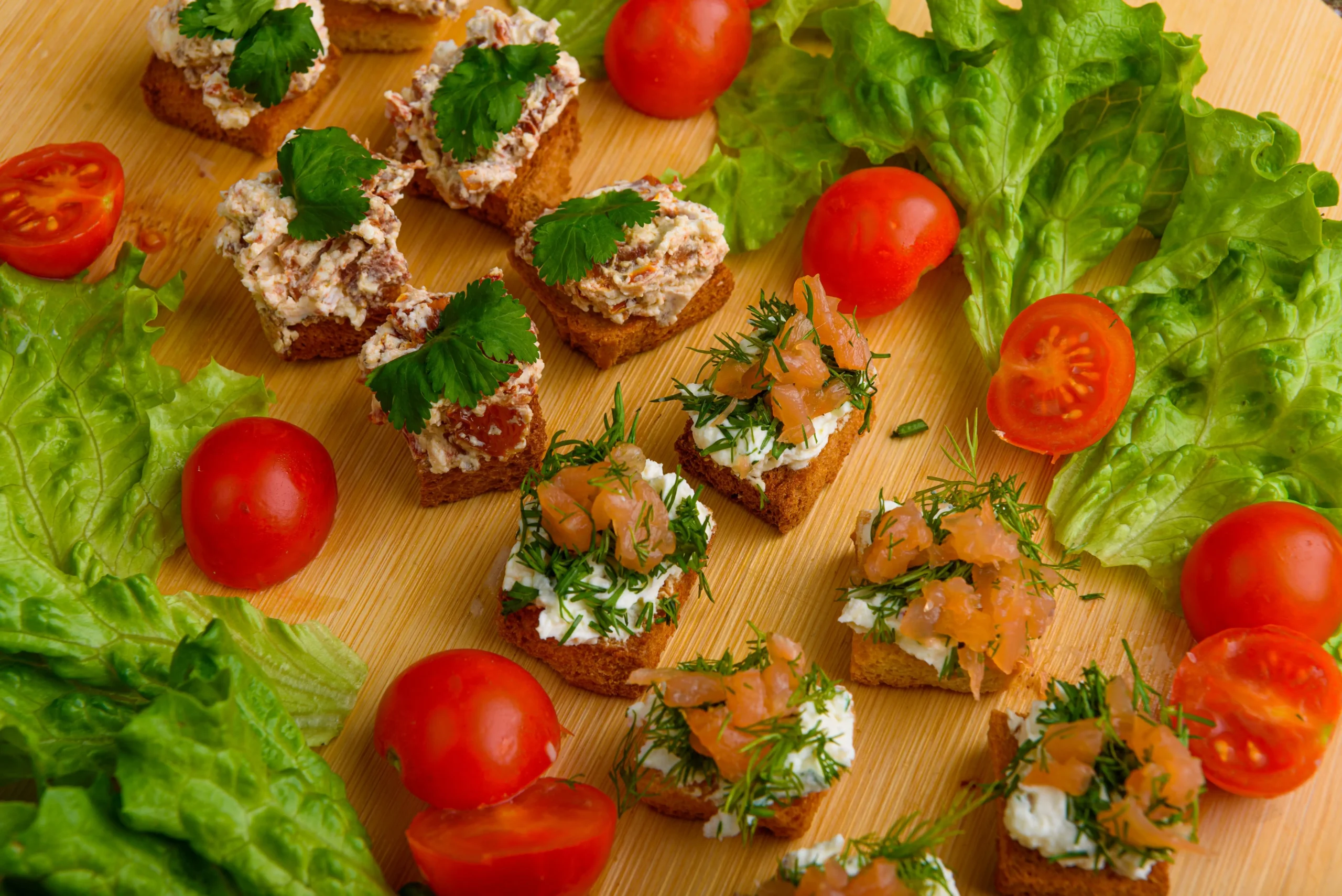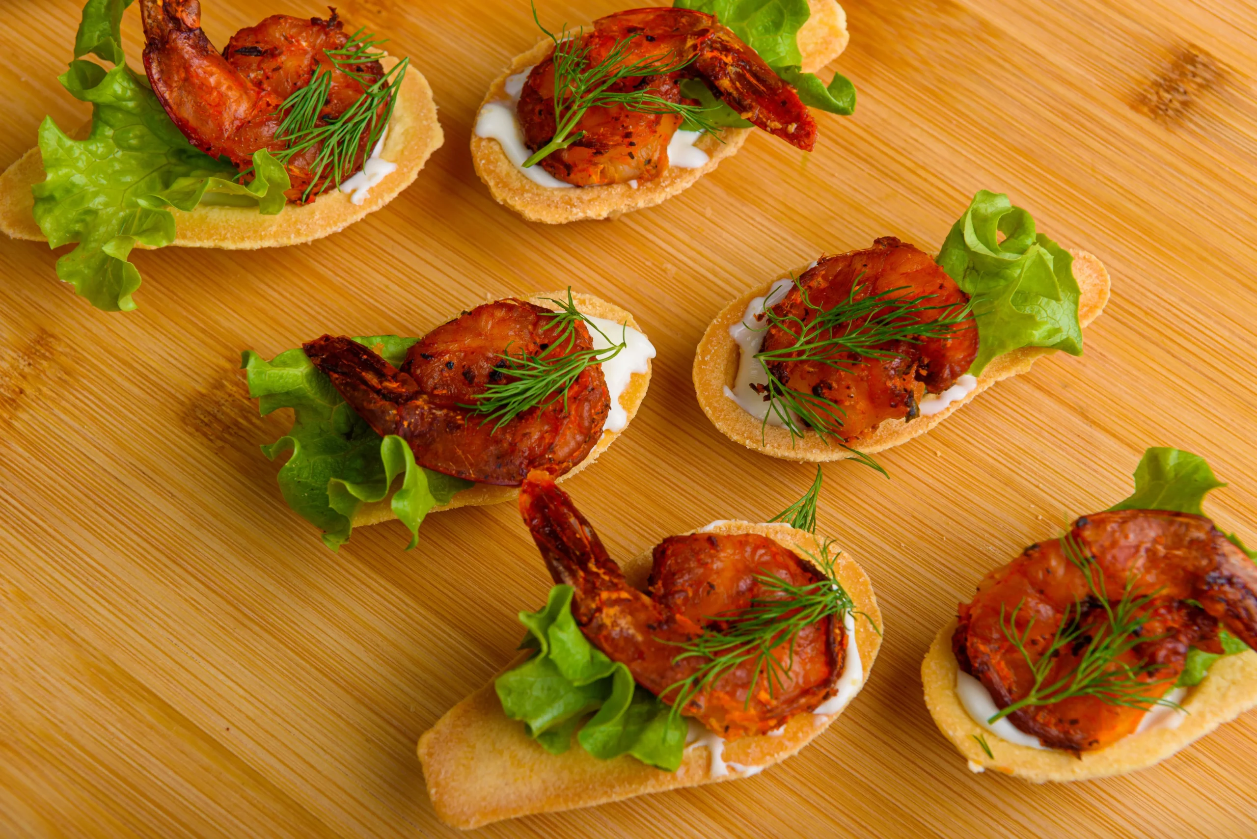 Užsisakant mini vieno kąsnio užkandžius su lašiša / krevetėmis +5eur (25vnt.)