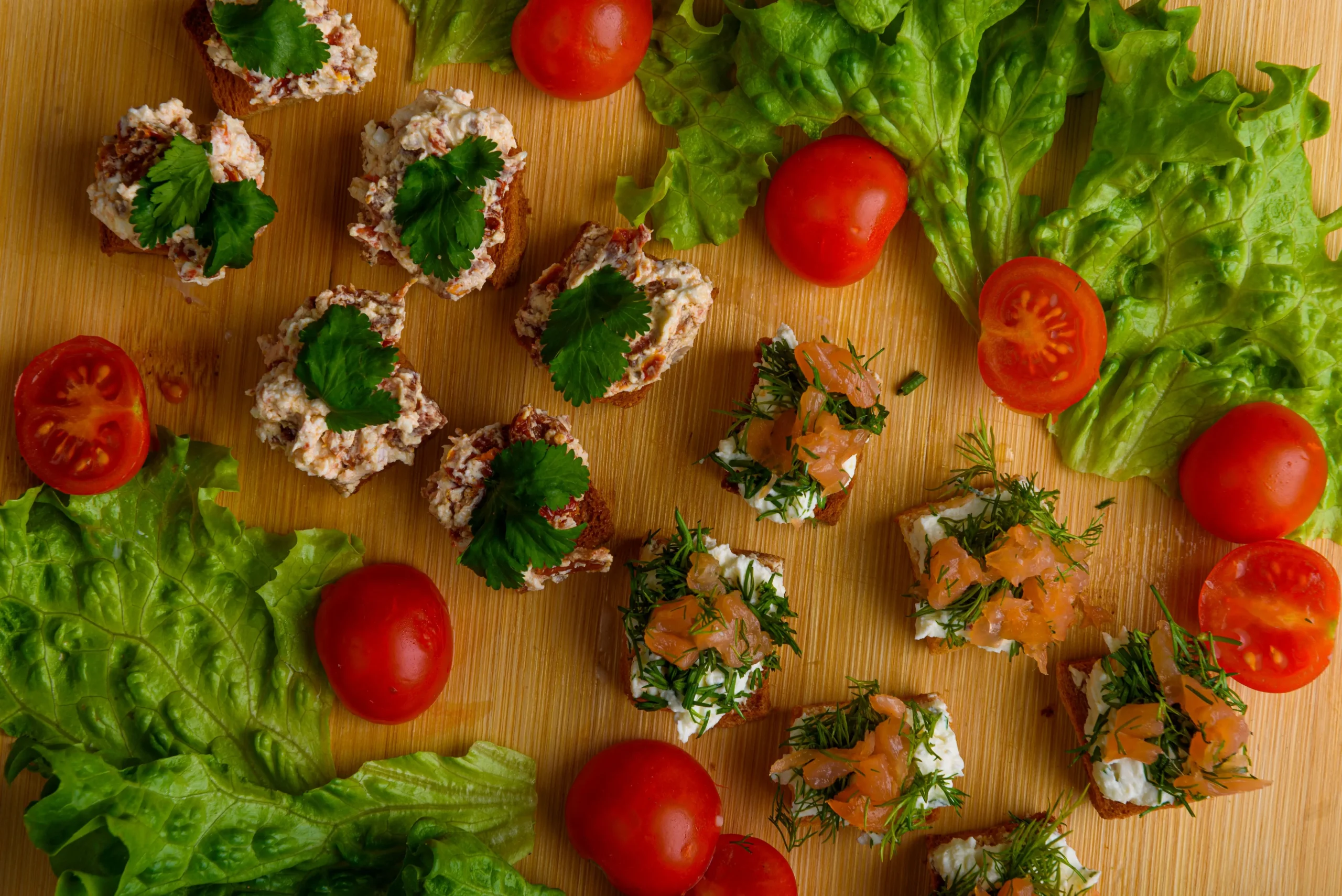 Mini vieno kąsnio užkandžiai ( miksas su daržovėmis, naminiais užtepėlėmis .):